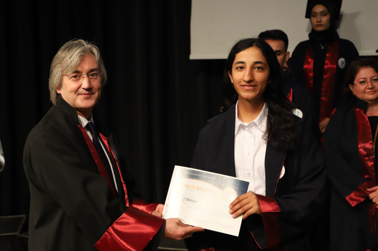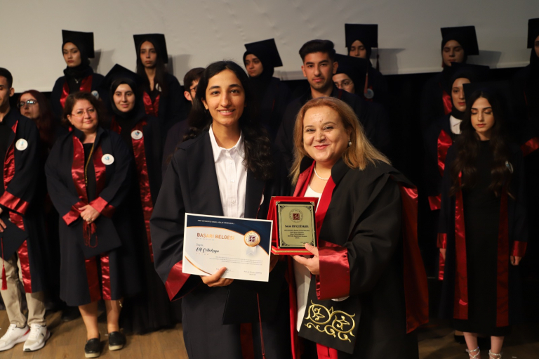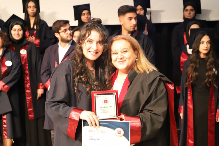 At the 2023-2024 Academic Year Degree Awards ceremony, certificates of achievement were presented to our students who ranked in our School by our vice rector Prof. Dr. Soner ÖZGEN and plaques were presented by our vice principal Dr. Lecturer. Member Aytül YILDIRIM was presented by. We congratulate our students Kerem PEKİNCE, Fatma ÇAM and Elif ÇETİNKAYA and wish them success in their future lives.